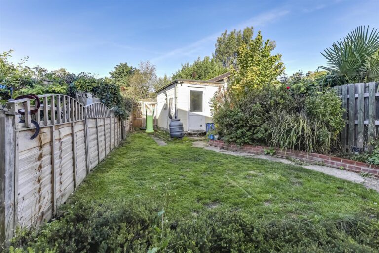 - Rear garden with storage outbuilding / workshop
