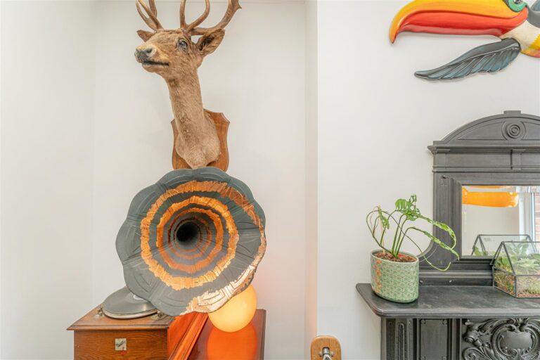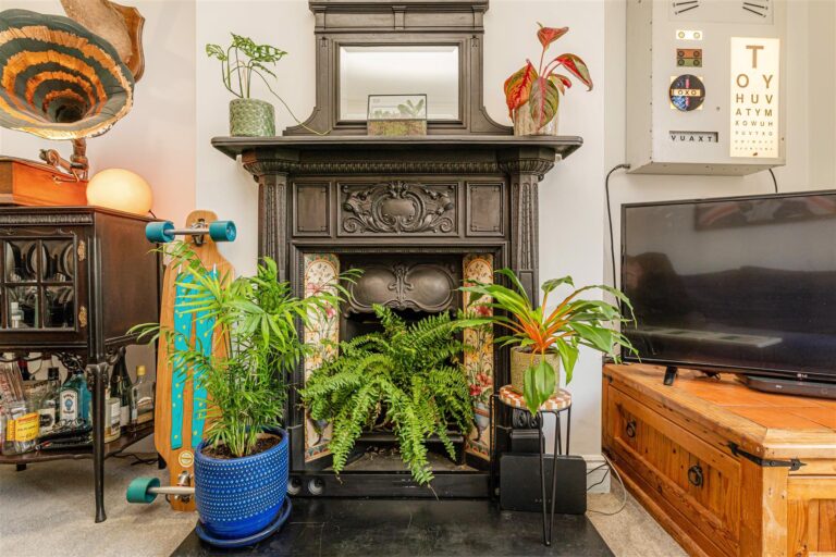 - Character features including cast iron fireplace