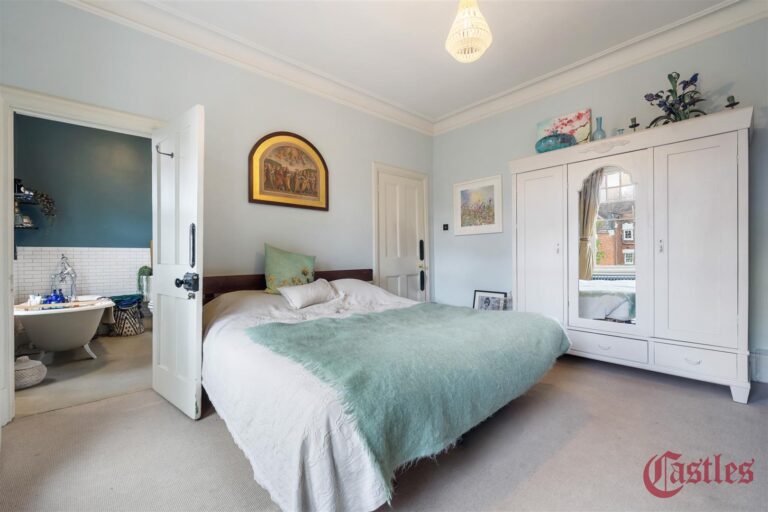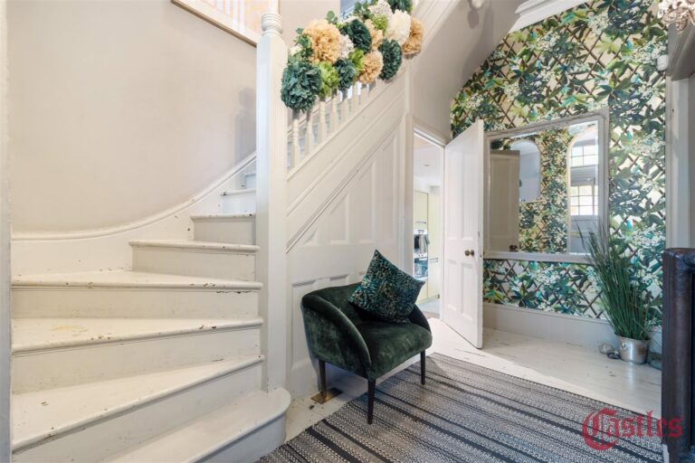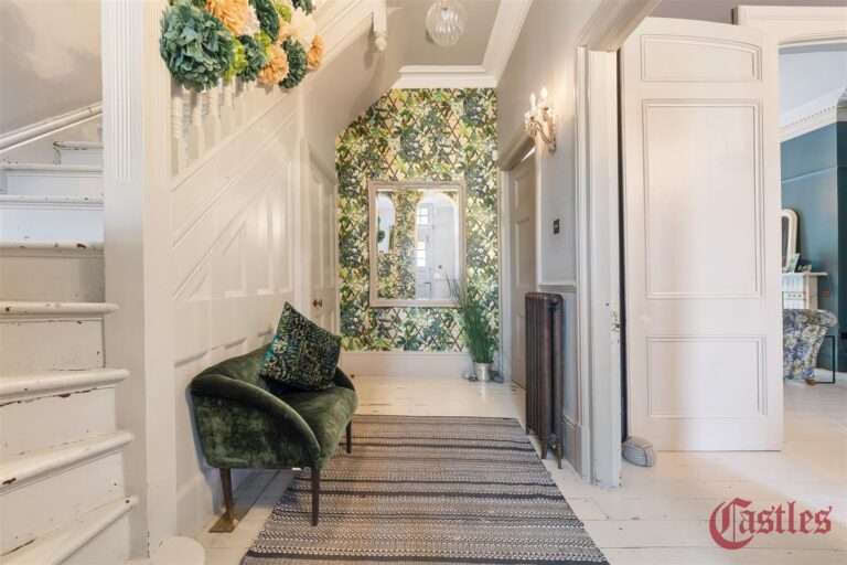 The ground floor features two elegant, interconnecting reception rooms and a spacious kitchen/dining room, both opening onto a tranquil, south-west facing private garden -perfect for entertaining or unwinding. A standout grand entrance hall and staircase, feature fireplaces, and ornate cornicing add to the home’s period charm.