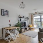 Perfectly situated within the sought-after Bellevalia development, this stylish and contemporary one-bedroom apartment offers the ideal blend of urban village living and riverside charm. Boasting excellent transport links, this home is perfect for those looking for both modern convenience and a peaceful setting. The spacious, open plan kitchen and reception room is finished to a high standard, complete with integrated appliances including an oven, hob, and extractor hood. Wooden flooring flows throughout, giving the apartment a sleek and modern feel. A generously sized double bedroom offers ample space for relaxation, while the contemporary bathroom adds to the apartment’s stylish appeal. Enjoy outdoor living with a good-sized private balcony and access to the communal roof terrace, providing the perfect spots to unwind and take in the views. Benefit from the urban village vibe of this quiet residential street, offering a true riverside lifestyle alongside the picturesque River Lea and Springfield Park. Bellevalia Court is just a short stroll from Clapton’s vibrant cafes, delis, bars, restaurants, and boutiques. Other popular East London hotspots such as Hoxton, Dalston, and Stoke Newington are also within easy reach, offering an abundance of entertainment, dining, and shopping options. This chain free contemporary apartment provides an exceptional opportunity for those looking to experience the best of East London living.