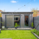 Private garden with garden office,