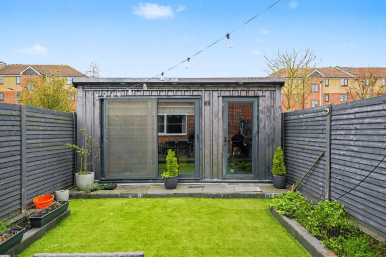 Outside, the home benefits from a private rear garden with a versatile garden room, ideal as a home office, gym or studio, plus a garage en-bloc