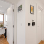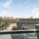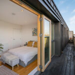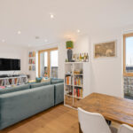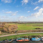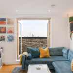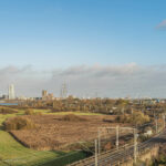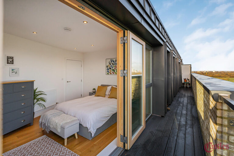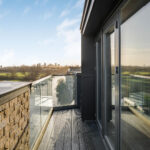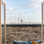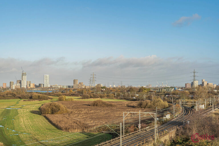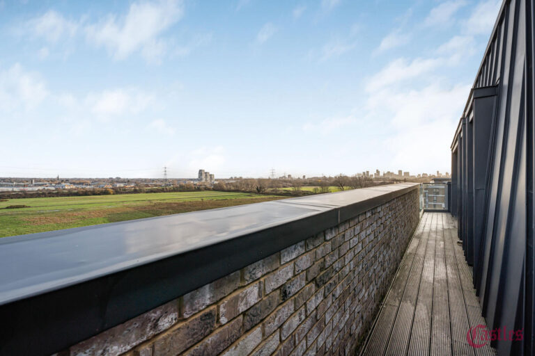 - Full-width private balcony with panoramic views of Walthamstow Marshes