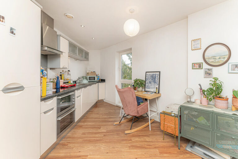 The bright open-plan living area is filled with natural light and opens onto a private balcony, providing an inviting space to relax, entertain, or enjoy morning coffee. The modern kitchen is fitted with high-quality appliances and generous worktop space, making it ideal for cooking and dining. A spacious double bedroom offers a peaceful retreat, complemented by a contemporary family bathroom. Cleverly integrated storage throughout keeps the home organised, while the excellent condition ensures a smooth, hassle-free move.